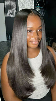 Proper install looks like braids that are consistent and don’t tug, partings that are clean and distinguishable, as well as a net over top to help support the thread and tracks being sewn on. Bundles that match your surface texture (how much shine reflects from you hair) will be best. Though, you do have the ability to get away with that bone straight, pressed look in relation to your surface texture. I see you buss down, middle part, jet black! Eat 'em up girl.
